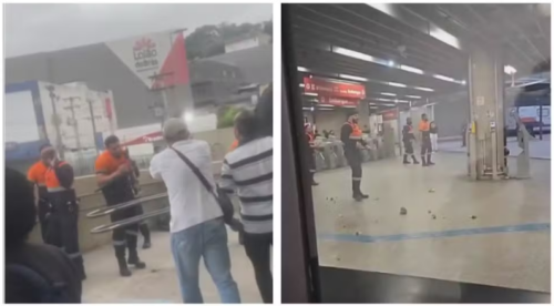 A abordagem, que visava coibir a venda de mercadorias no interior dos trens e nas dependências da estação, escalou rapidamente para uma briga generalizada. Registros feitos no local capturaram o momento em que ambulantes passaram a lançar produtos contra os agentes de segurança.