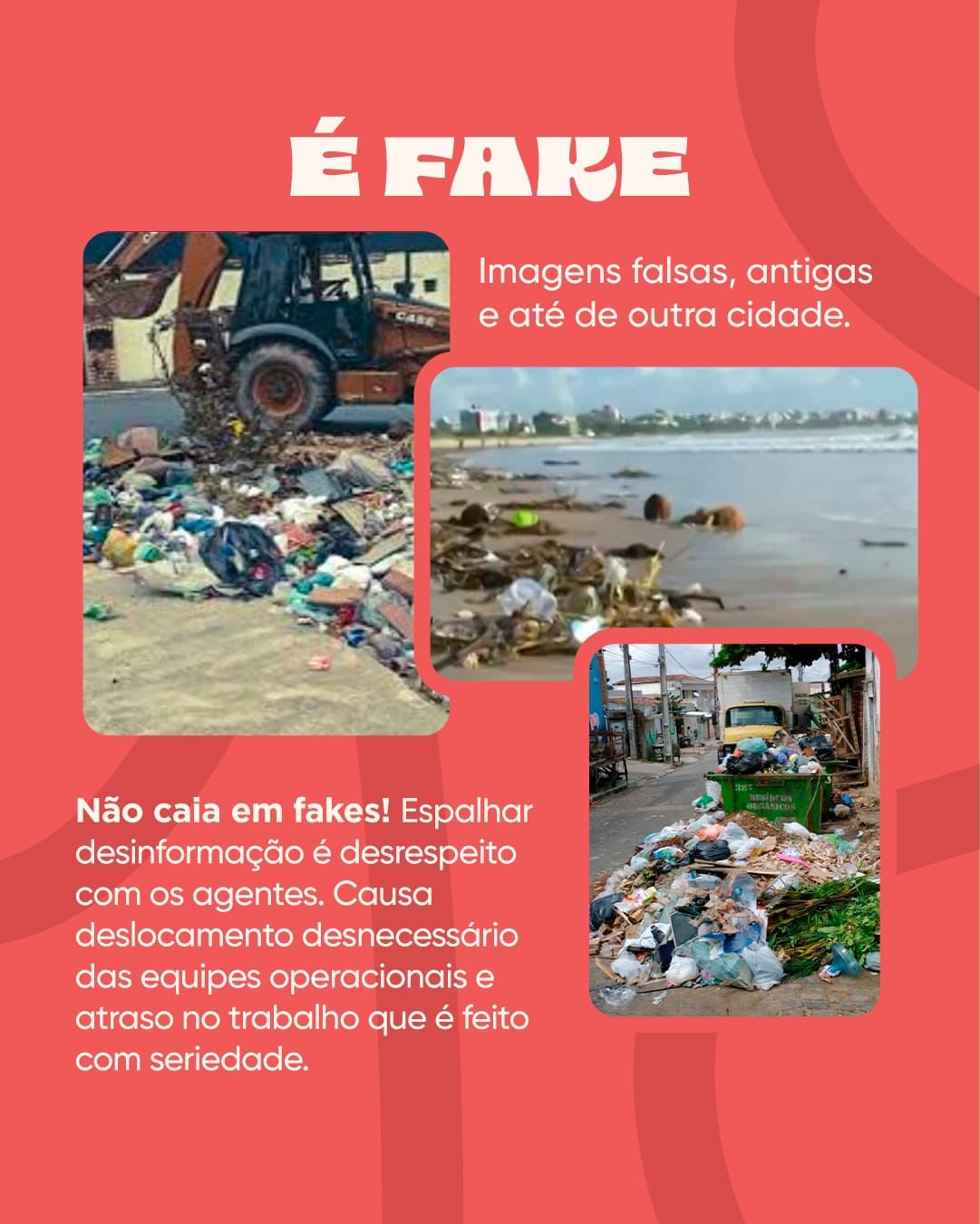 Veloso explicou que a propagação de fake news provoca deslocamentos desnecessários das equipes operacionais, atrasando atendimentos já programados e prejudicando o planejamento das ações. “Quando a população se depara com lixo ou alguma demanda específica, o caminho correto é solicitar pelos canais oficiais. Viu lixo? Solicite pelo aplicativo para que o local entre na programação do bairro”, reforçou.