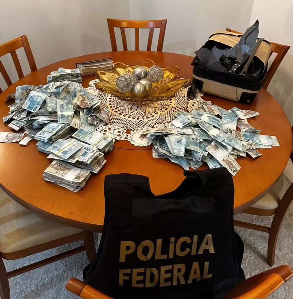 Durante o cumprimento de mandado de busca e apreensão em um apartamento em Balneário Camboriú (SC), um dos ocupantes do imóvel arremessou pela janela uma mala cheia de dinheiro em espécie. O montante foi recuperado pelos policiais. Além do dinheiro, foram apreendidos dois veículos de luxo e dois smartphones.