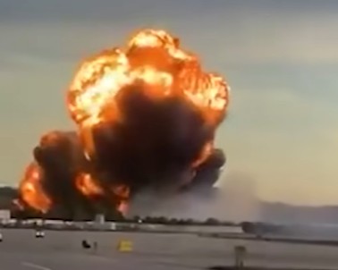 O incidente provocou um incêndio de grandes proporções, alimentado pelo combustível a bordo, em vários prédios de uma área industrial.