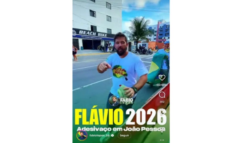 A ação aponta que Fábio Lopes teria promovido “adesivaços” e atos públicos em João Pessoa e Campina Grande utilizando materiais com dizeres como “Flávio 2026”, “Flávio Presidente” e “É preciso eleger Flávio Bolsonaro”. De acordo com a representação, essas ações configuram pedido explícito de voto antes do período permitido pela legislação, que estabelece o dia 15 de agosto do ano eleitoral como marco inicial para propagandas dessa natureza.